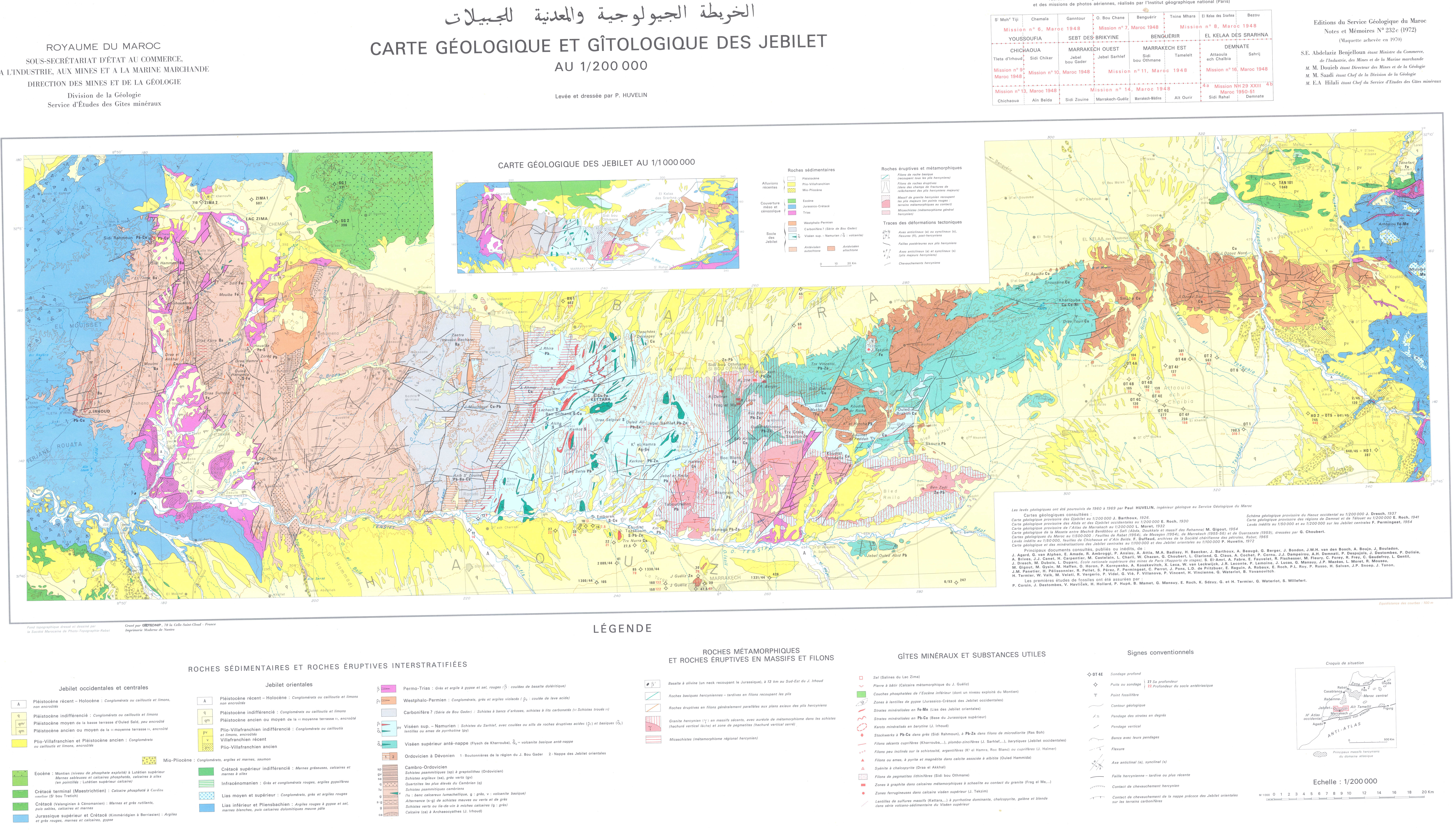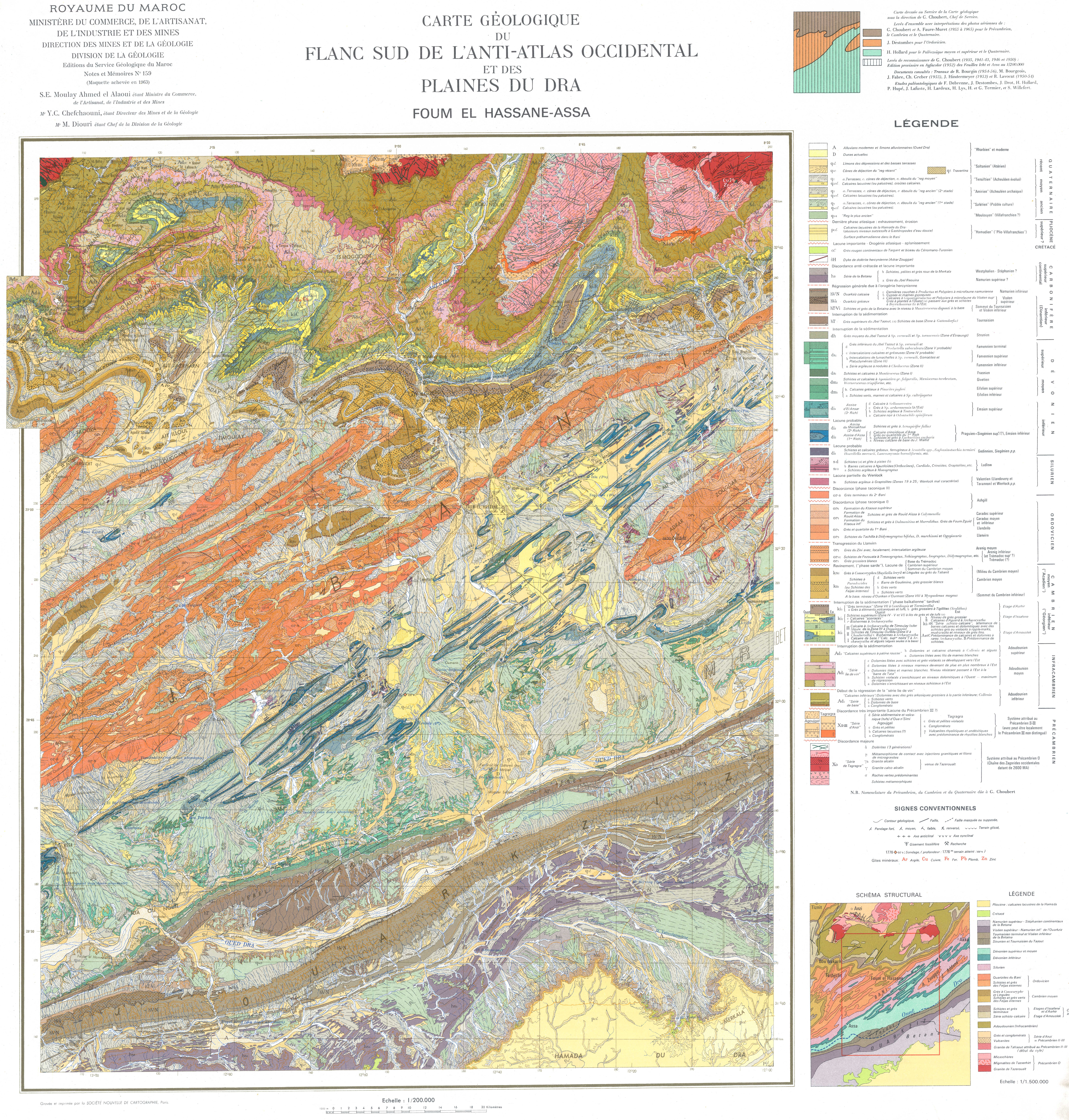 Après vérification des cartes disponibles aux échelles 1/50 000, 1/100 000, 1/200 000 et 1/500 000, il n’existe pas de feuille couvrant intégralement la zone d’étude d’« Ahdil ». En attendant, tu peux t’appuyer sur la carte géologique nationale au 1/1 000 000. Si je trouve une carte à plus grande échelle (plus détaillée) pour cette zone, je te l’enverrai